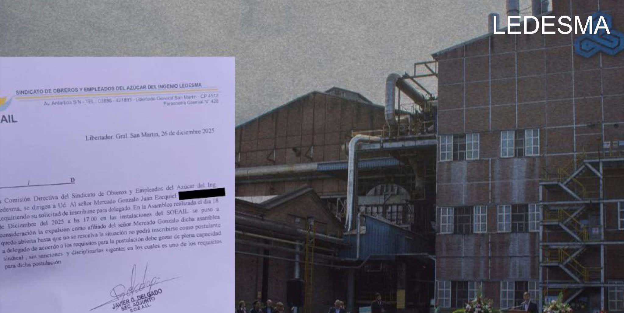 En el marco de una ofensiva de la patronal con despidos masivos, la comisión directiva del Soeail (Sindicato de Obreros y Empleados del Azúcar del Ingenio Ledesma), envió una nota que intenta proscribir a uno de los delegados opositores que es parte del acampe de resistencia. También intentan expulsar del sindicato a delegados y activistas. No se puede permitir este ataque a la democracia sindical. Todos los sectores combativos y de derechos humanos tienen que apoyar a las familias trabajadoras en esta pelea con una comisión directiva que tiene por detrás a la familia Blaquier que quiere volver a pasar por encima de todos y con la ayuda de los gobiernos exige la reforma laboral esclavista.